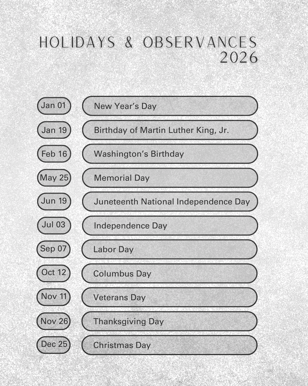 Holidays & Observances in 2026