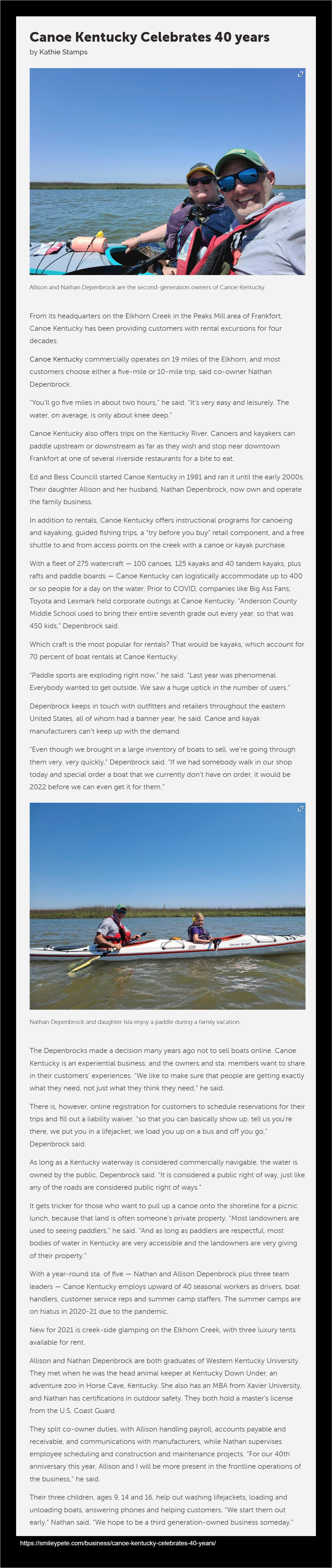 Here’s the online version of this article on Canoe Kentucky. as it appeared in the May 2021 issue of Business Lexington.