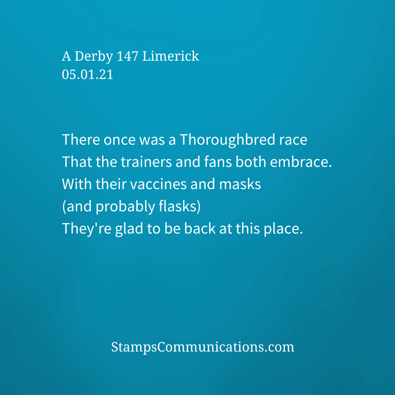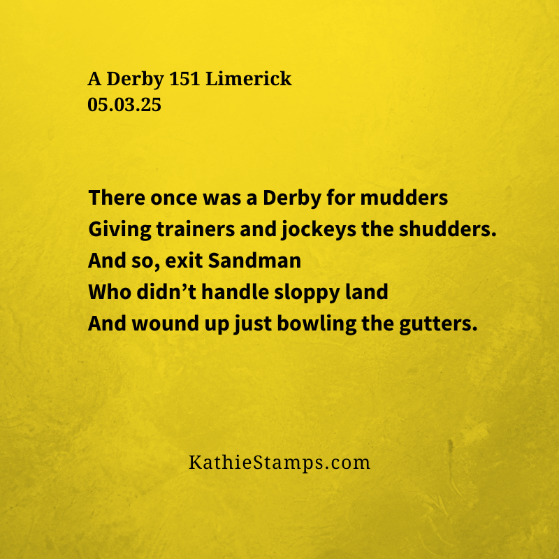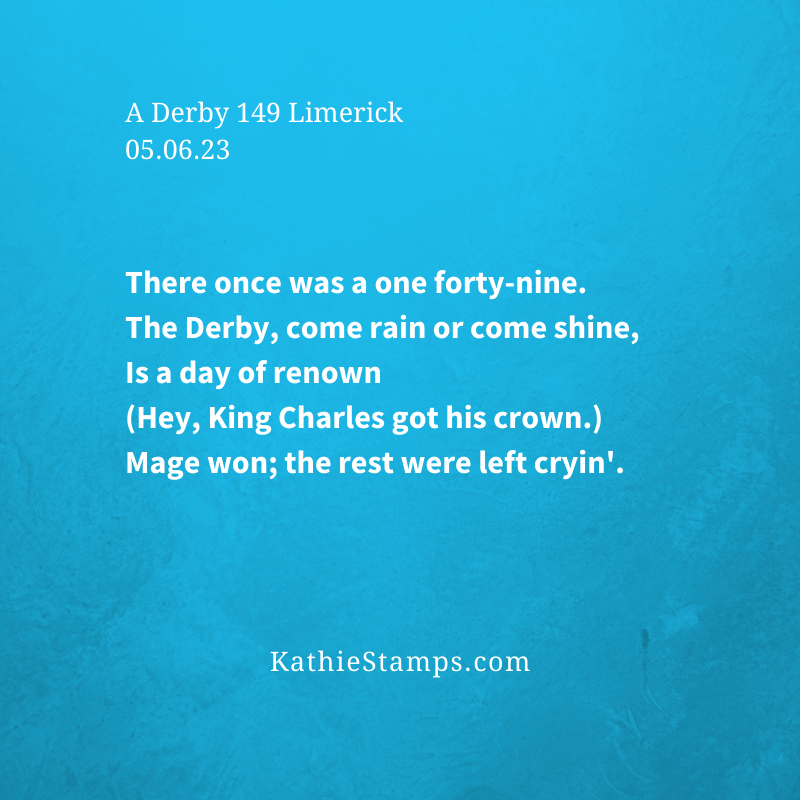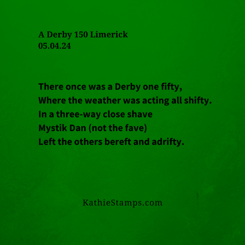 *At first, Maximum Security won. So I used pink for the limerick background, in honor of the hot pink silks. Then there was an objection. So I just changed the color instead of the wording.